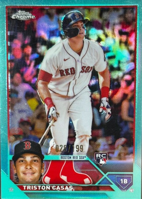 The Triston Casas 2023 Topps Chrome #174 Aqua Refractor /199 Rookie card in Raw condition has not changed in price in the last 30 days and was last sold for $1.04 .