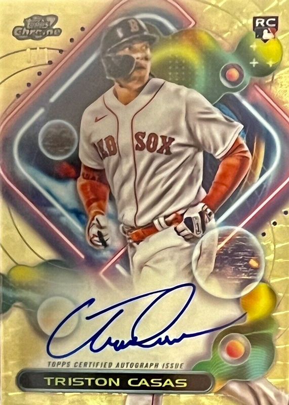 This card is 1 of 18 Triston Casas' card variations in the 2023 Topps Chrome Cosmic set being tracked by Sports Card Investor, including Base, Nucleus Refractor, Refractor, Aqua Equinox Refractor /199, and Blue Moon Refractor /99.