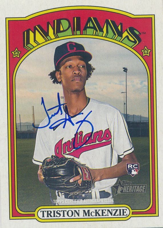 This card is 1 of 2 Triston McKenzie's card variations in the 2021 Topps Heritage High Number set being tracked by Sports Card Investor, including Real One Autographs - Red Ink /72.