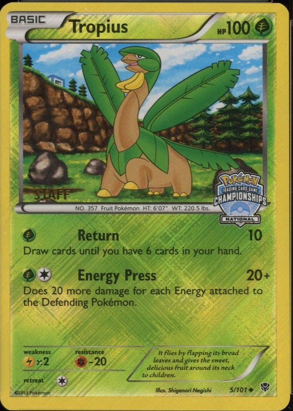Tropius 2013 Black & White: Plasma Blast #005/101 Promo (National Championships - STAFF) RAW TCG (LIGHTLY PLAYED) Price Guide