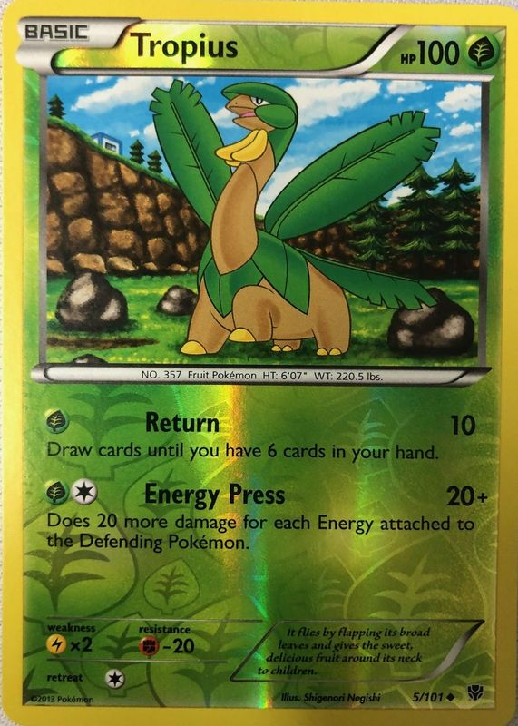 Tropius 2013 Black & White: Plasma Blast #005/101 Reverse Holo RAW TCG (NEAR MINT) Price Guide