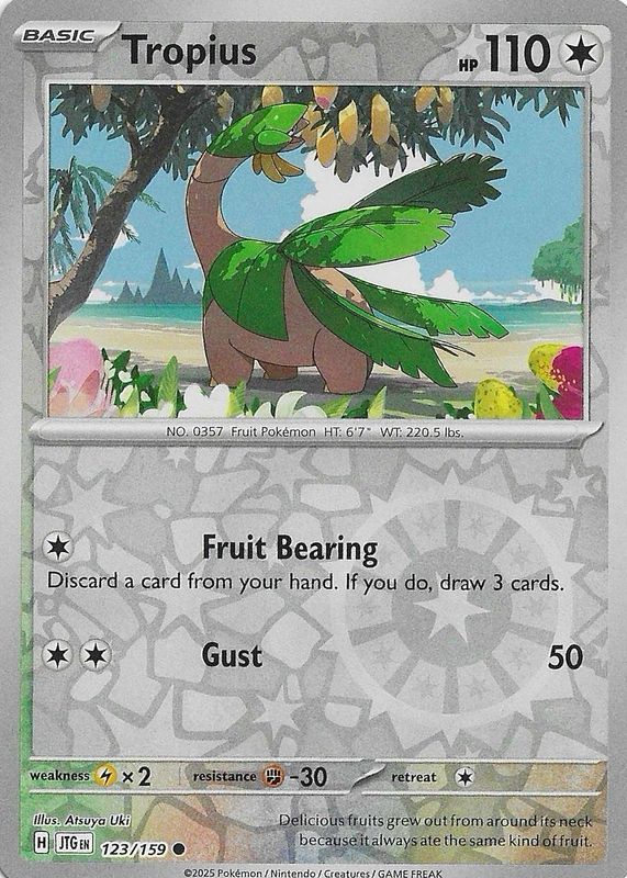 Tropius 2025 Scarlet & Violet: Journey Together #123/159 Reverse Holo RAW TCG (LIGHTLY PLAYED) Price Guide