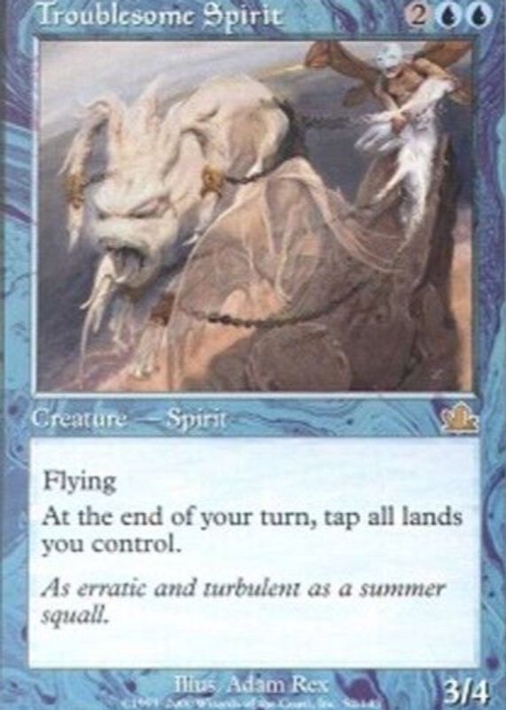 The Troublesome Spirit 2000 Prophecy #52 Base card in Raw TCG (Lightly Played) condition has not changed in price in the last 30 days and was last sold for $0.99 .