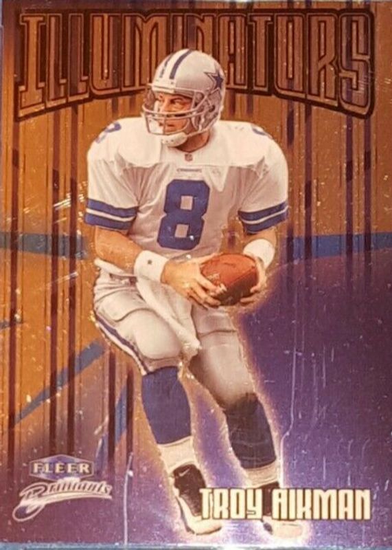 This card is 1 of 7 Troy Aikman's card variations in the 1998 Fleer Brilliants set being tracked by Sports Card Investor, including #32 Base, #32B Blue, #4I Illuminators, #32TG Gold /99, and #32G Gold /99.