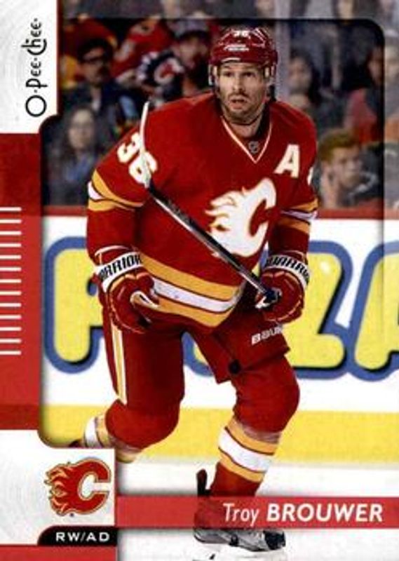 The Troy Brouwer 2017 O-Pee-Chee #152 Red card is 1 of 6 Troy Brouwer's card variations in the 2017 O-Pee-Chee set being tracked by Sports Card Investor, including Base, Rainbow Foil, Retro, Retro Blank Back, and Black Rainbow Foil /100.