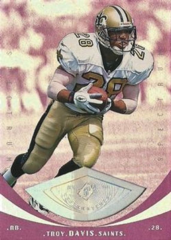The Troy Davis 1998 SPx Finite #142 Spectrum /150 card is 1 of 3 Troy Davis' card variations in the 1998 SPx Finite set being tracked by Sports Card Investor, including Base /7200, and Radiance /3600.