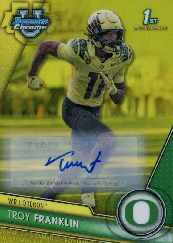 TROY FRANKLIN 2023 1st Bowman Chrome U YELLOW Refractor AUTO /75 SP Oregon