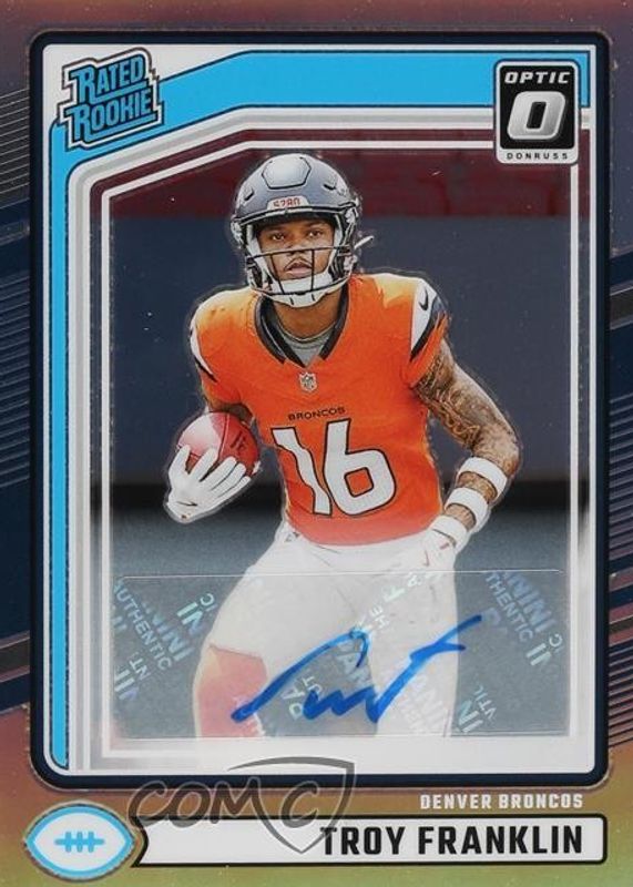 Troy Franklin 2024 Donruss #338 Optic Preview Holo Auto Rookie RC Broncos