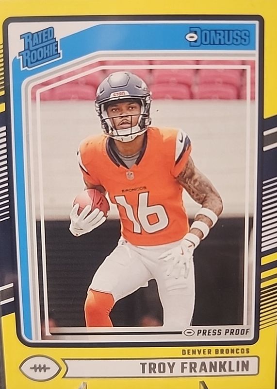 2024 Panini Donruss Press Proof Rated Rookie Yellow Troy Franklin RC Near Mint