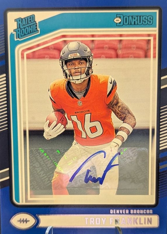 Best Prices Available For Sale of Troy Franklin 2024 Donruss #338 Rated Rookie Autographs - Blue