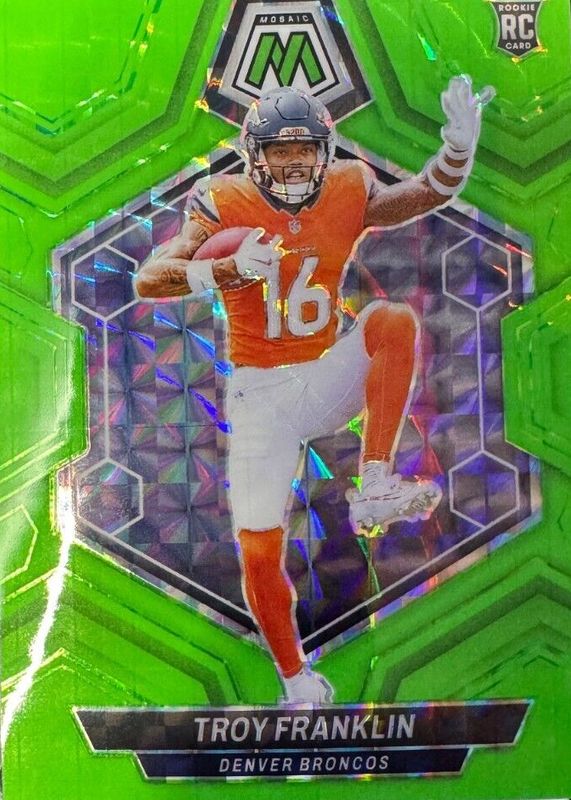 Recent Sales of Troy Franklin 2024 Mosaic #378 Green Fluorescent /10 Rookie Raw
