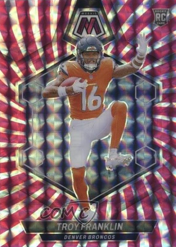 Recent Sales of Troy Franklin 2024 Mosaic #378 Pink Swirl /13 Rookie Raw