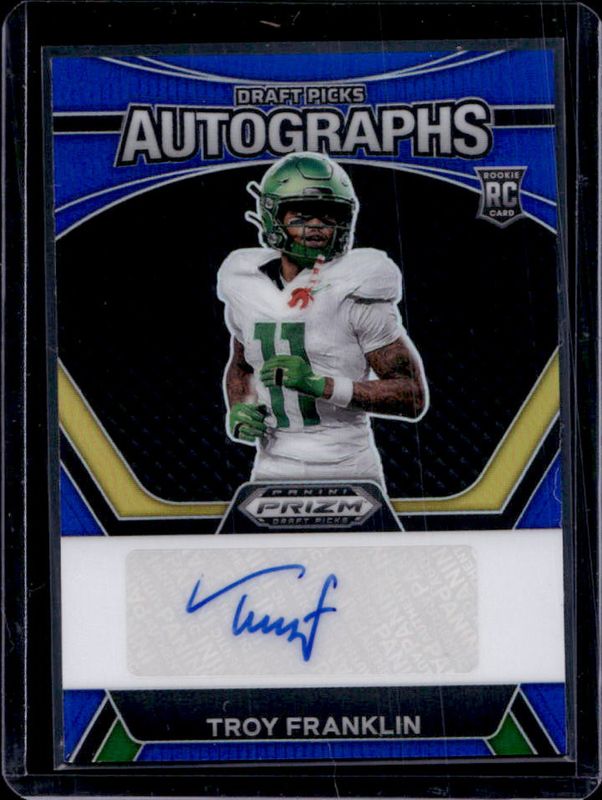 Troy Franklin 2024 Prizm Draft Picks #DPA-TFN Draft Picks Autographs - Blue /149 Rookie RAW Price Guide