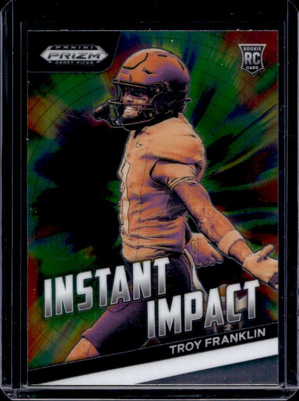 The Troy Franklin 2024 Prizm Draft Picks #II-TF Instant Impact Rookie card is 1 of 137 Troy Franklin's card variations in the 2024 Prizm Draft Picks set being tracked by Sports Card Investor, including Base, Green, Purple Wave, Red Ice, and Ruby Wave.