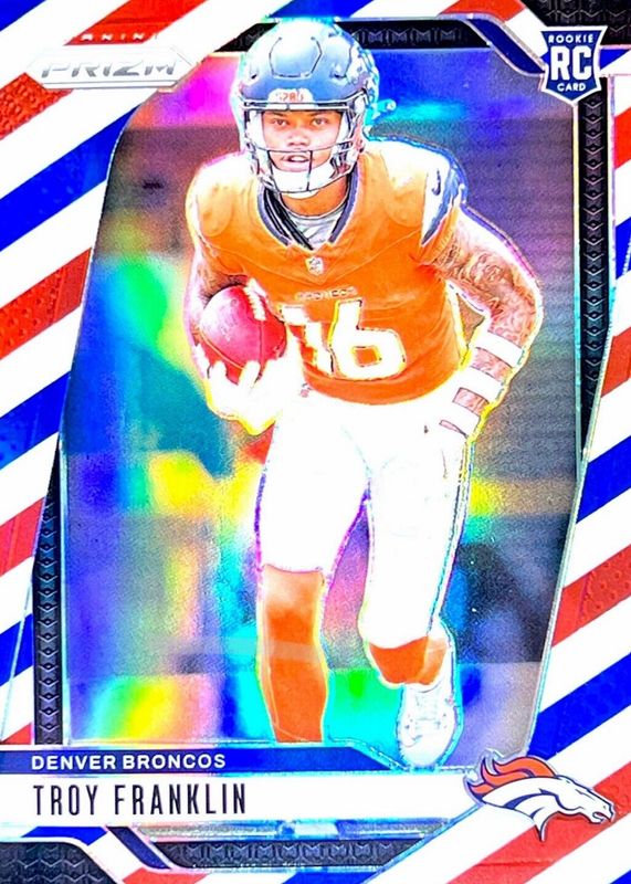 2024 Prizm Card Troy Franklin Red White Blue Holo Rookie RC #393 Denver Broncos