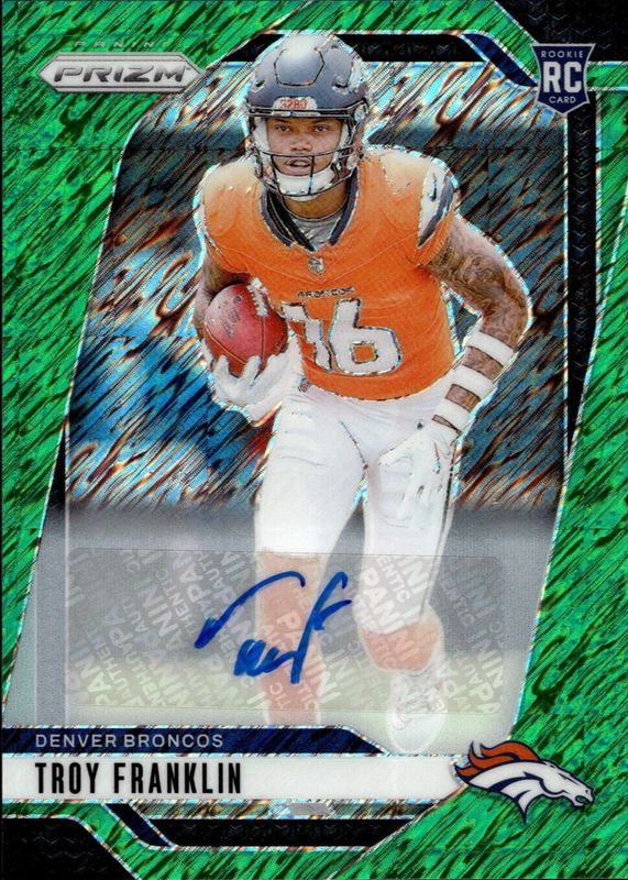 2024 Panini Prizm Green Shimmer #393 Troy Franklin RC BRONCOS ROOKIE AUTO 2/5