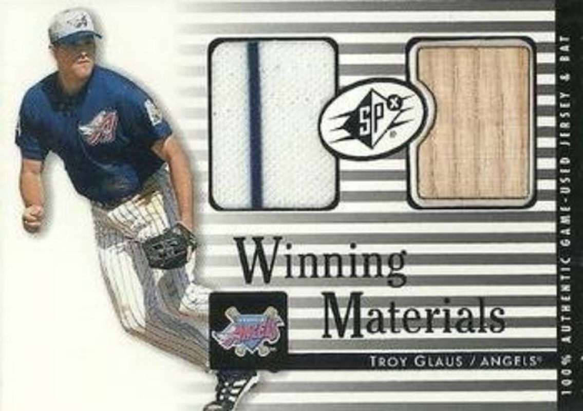 The Troy Glaus 2000 SPx #WM-TGL Winning Materials /100 card is 1 of 4 Troy Glaus' card variations in the 2000 SPx set being tracked by Sports Card Investor, including Base /1500, Radiance /100, and Spectrum /1.
