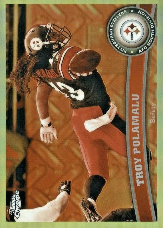 This card is 1 of 10 Troy Polamalu's card variations in the 2011 Topps Chrome set being tracked by Sports Card Investor, including Orange Refractor, Refractor, X-Fractor, Purple Refractor /499, and Black Refractor /299.