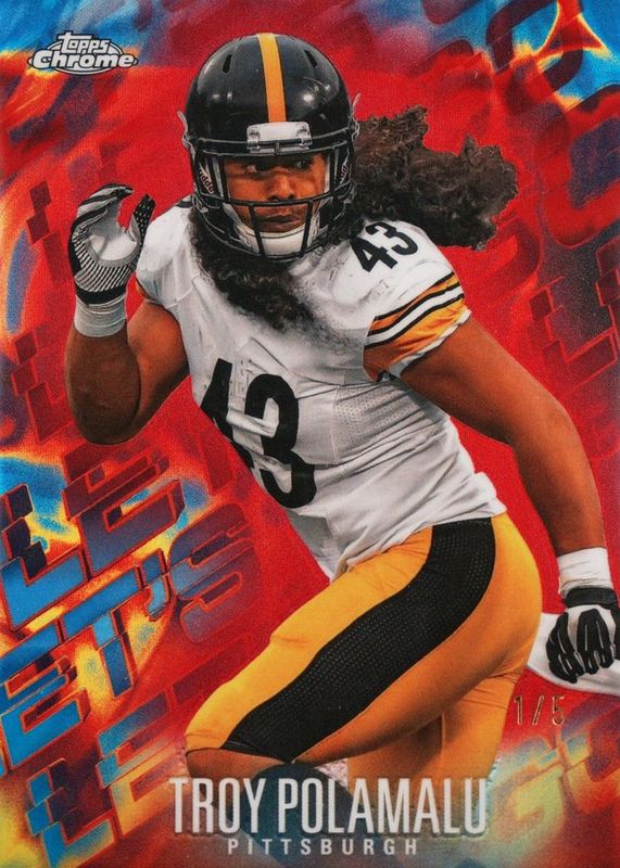 This card is 1 of 3 Troy Polamalu's card variations in the 2024 Topps Chrome set being tracked by Sports Card Investor, including Let's Go /(SSP), and Let's Go - Superfractor /1.