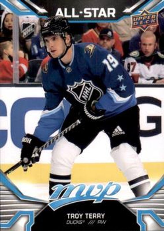 The Troy Terry 2022 Upper Deck MVP #AS14 All Star card is 1 of 31 Troy Terry's card variations in the 2022 Upper Deck MVP set being tracked by Sports Card Investor, including Base, Blue Script, Gold Script, Ice Battles, and Silver Script.