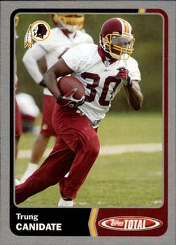 The Trung Canidate 2003 Topps Total #87 Silver card is 1 of 2 Trung Canidate's card variations in the 2003 Topps Total set being tracked by Sports Card Investor, including Base.