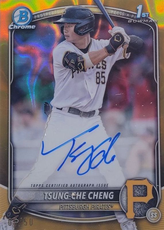 Tsung-Che Cheng 2025 Bowman #CPA-TC Chrome Prospect Auto - Gold Lava Refractor /50 (1st) Rookie RAW Price Guide