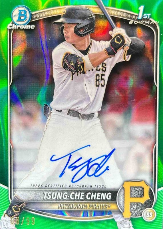 2025 Bowman Chrome Prospect Auto Tsung-Che Cheng Green Lava /99 Pirates 1st