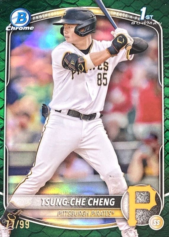 2025 Bowman Chrome Prospects Tsung-Che Cheng #BCP-95 Green Reptilian /99 Pirates