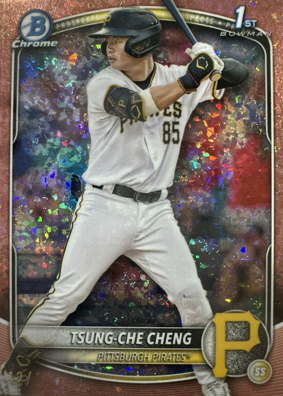 Recent Sales of Tsung-Che Cheng 2025 Bowman #BCP-95 Chrome Prospects - Rose Gold Mini Diamond Refractor /15 (1st) Rookie Raw