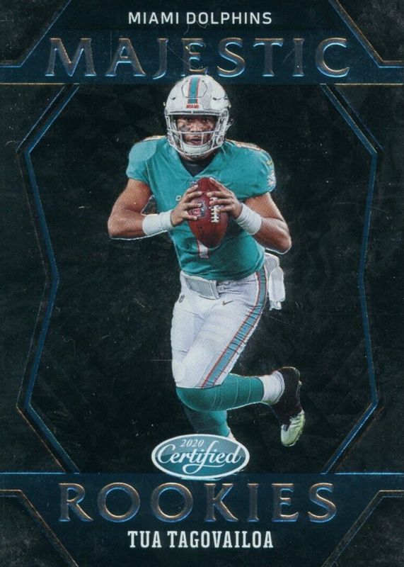 The Tua Tagovailoa 2020 Certified #MR-2 Majestic Rookies /(SSP) card in Raw condition has not changed in price in the last 30 days and was last sold for $4.80 .