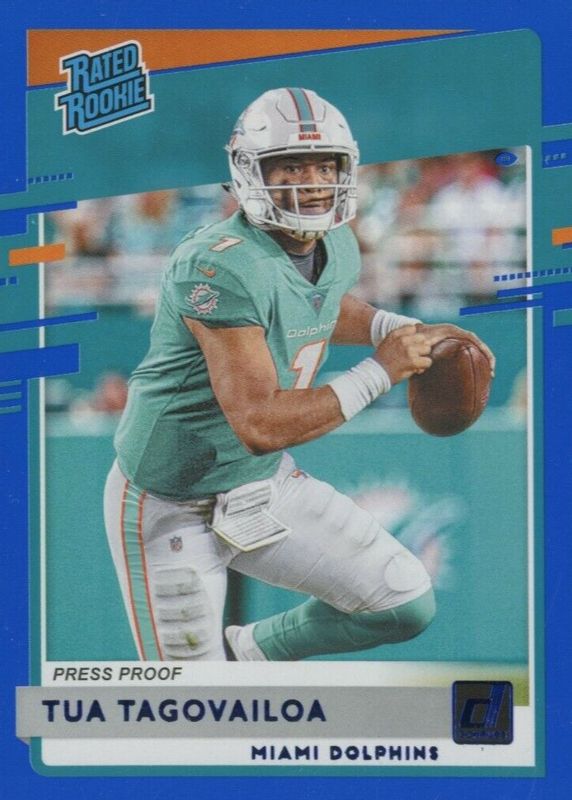 2020 Donruss Tua Tagovailoa Rated Rookie Blue Press Proof #302