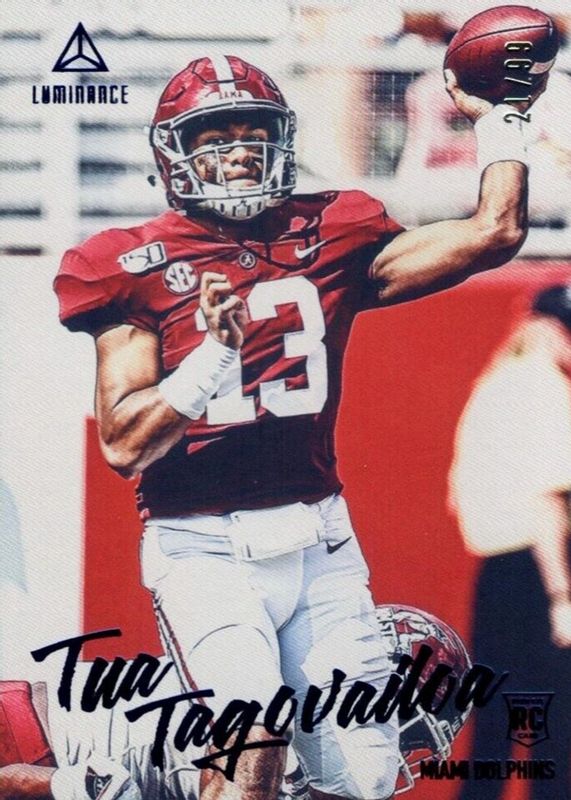 The Tua Tagovailoa 2020 Luminance #102 Blue /99 Rookie card in Raw condition has not changed in price in the last 30 days and was last sold for $6.53 .