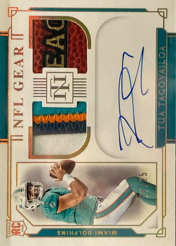 Auctions Ending Soon for Tua Tagovailoa 2020 National Treasures #RSC-TT Rookie NFL Gear Signature Combos - Prime /25 BGS 9.5