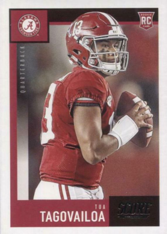 This card is 1 of 4 Tua Tagovailoa's card variations in the 2020 Score set being tracked by Sports Card Investor, including NFL Draft, Rookie Signatures, and Next Up /(SSP).