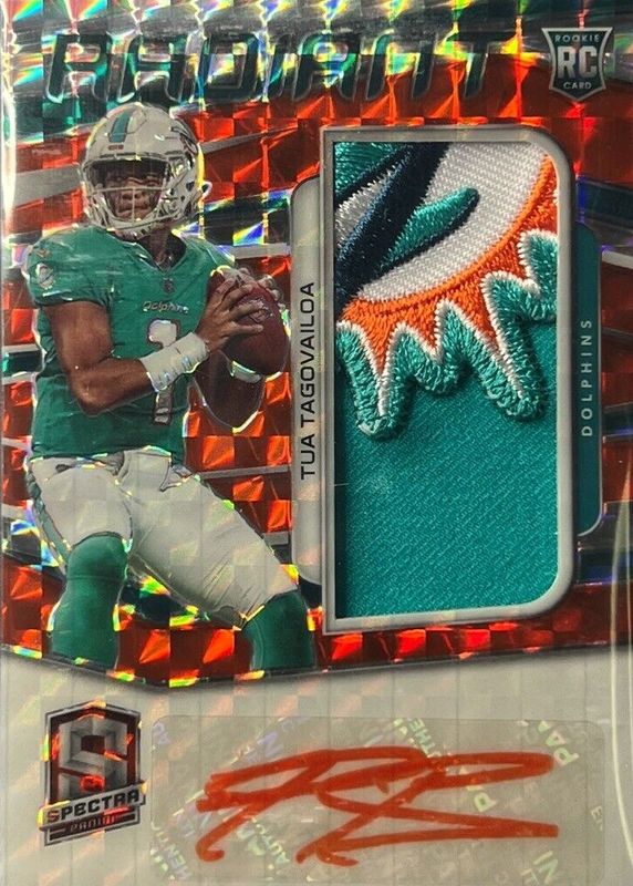 Best Prices Available For Sale of Tua Tagovailoa 2020 Spectra #1 Radiant Rookie Patch Signatures - Neon Orange (/5)