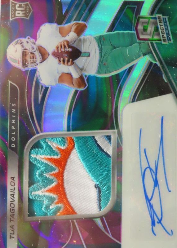 Auctions Ending Soon for Tua Tagovailoa 2020 Spectra #202 Rookie Patch Auto - Neon Marble /4 RAW