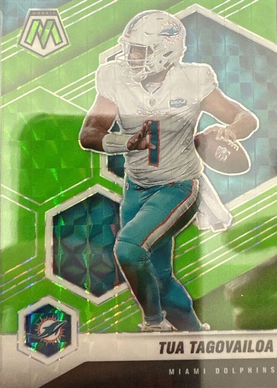 Recent Sales of Tua Tagovailoa 2021 Mosaic #122 Green Fluorescent /10 Raw