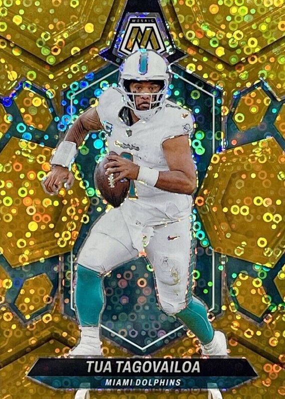 This card is 1 of 49 Tua Tagovailoa's card variations in the 2024 Mosaic set being tracked by Sports Card Investor, including Choice Peacock /(SSP), Genesis /(SSP), Honeycomb /(SSP), National Pride - Choice Peacock /(SSP), and National Pride - Genesis /(SSP).