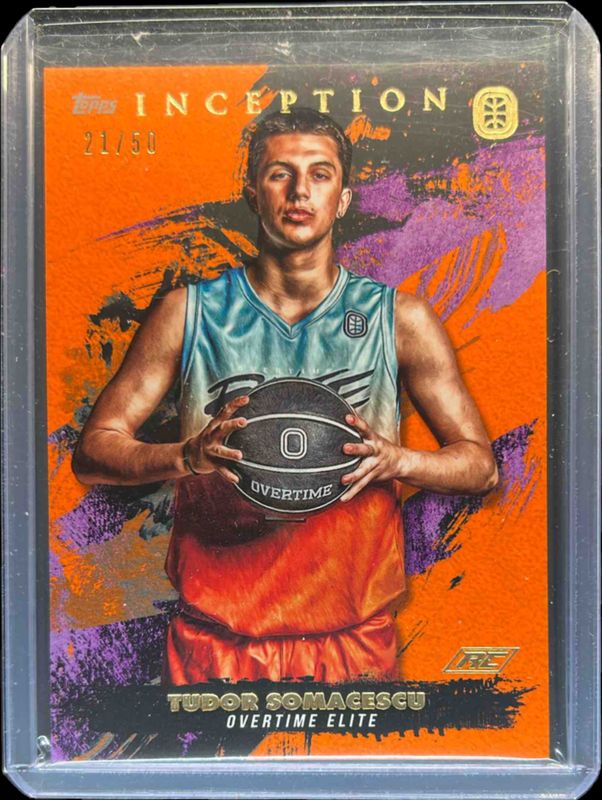 The Tudor Somacescu 2021 Topps Inception OTE Overtime Elite #19 Orange /50 card is 1 of 76 Tudor Somacescu's card variations in the 2021 Topps Inception OTE Overtime Elite set being tracked by Sports Card Investor, including #90 Base, #97 Base, #19 Base, #97 Blue /199, and #19 Blue /199.