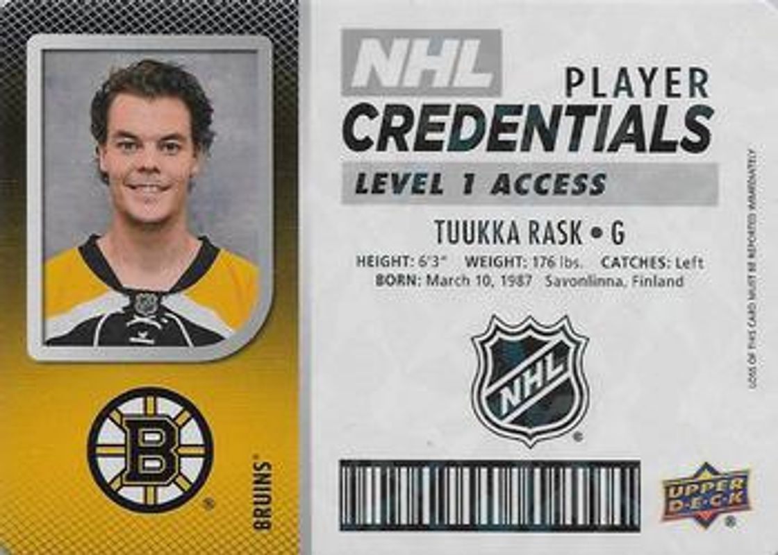 Tuukka Rask 2017 Upper Deck MVP #NHL-TR NHL Player Credentials Level 1 Access RAW Price Guide