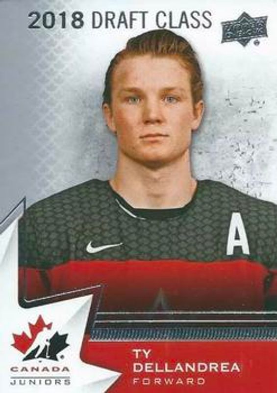 The Ty Dellandrea 2020 Upper Deck Team Canada Juniors #90 Base Rookie card is 1 of 29 Ty Dellandrea's card variations in the 2020 Upper Deck Team Canada Juniors set being tracked by Sports Card Investor, including #36 Base, #119 Base, #119 Exclusives /165, #90 Exclusives /165, and #36 Exclusives /165.