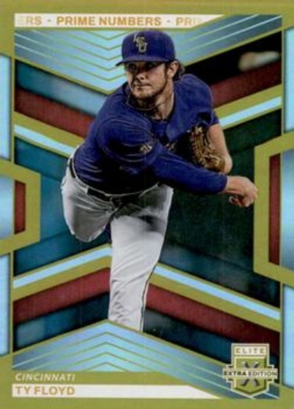 The Ty Floyd 2023 Elite Extra Edition #8 Prime Numbers Gold /24 card is 1 of 78 Ty Floyd's card variations in the 2023 Elite Extra Edition set being tracked by Sports Card Investor, including Base, Pink, Signatures, Status Green /499, and Signatures die-cut /399.