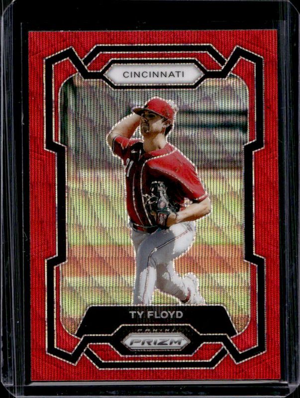 The Ty Floyd 2024 Prizm #143 Ruby Wave card is 1 of 30 Ty Floyd's card variations in the 2024 Prizm set being tracked by Sports Card Investor, including Base, Blue Ice, Green, Green Ice, and Pink Ice.