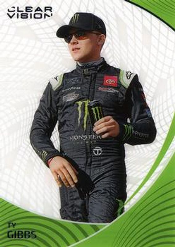The Ty Gibbs 2022 Chronicles NASCAR #26 Clear Vision card is 1 of 110 Ty Gibbs' card variations in the 2022 Chronicles NASCAR set being tracked by Sports Card Investor, including Black, Black Autographs, Black Green, Magnitude, and Obsidian.