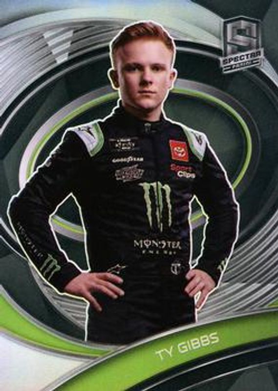 The Ty Gibbs 2022 Chronicles NASCAR #18b Spectra card is 1 of 110 Ty Gibbs' card variations in the 2022 Chronicles NASCAR set being tracked by Sports Card Investor, including Black, Black Autographs, Black Green, Clear Vision, and Magnitude.