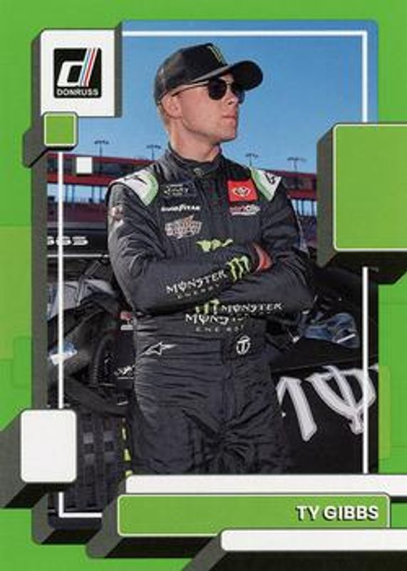 The Ty Gibbs 2023 Donruss NASCAR #71 Lime Green card is 1 of 68 Ty Gibbs' card variations in the 2023 Donruss NASCAR set being tracked by Sports Card Investor, including #71 Base, #156 Base, #156 Carolina Blue, #71 Carolina Blue, and #156 Lime Green.