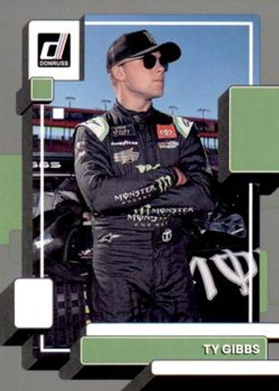 The Ty Gibbs 2023 Donruss NASCAR #71 Silver card is 1 of 68 Ty Gibbs' card variations in the 2023 Donruss NASCAR set being tracked by Sports Card Investor, including #71 Base, #156 Base, #156 Carolina Blue, #71 Carolina Blue, and #71 Lime Green.