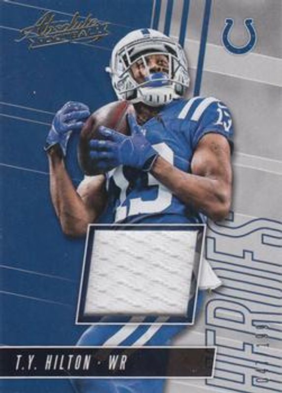 TY Hilton's Football cards are available in at least 165 sets. TY Hilton's biggest 7-day price movers are 2018 Absolute #AHM-TH Absolute Heroes - Memorabilia /199, 2018 Absolute #AHM-TH Absolute Heroes Memorabilia Platinum Edition /1, and 2018 Absolute #CG-TH Covering Ground - Spectrum Gold.