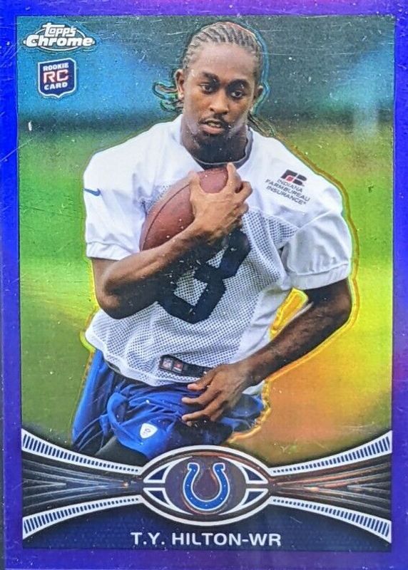 The TY Hilton 2012 Topps Chrome #168 Purple Refractor /499 Rookie card in Raw condition has not changed in price in the last 30 days and was last sold for $4.25 .