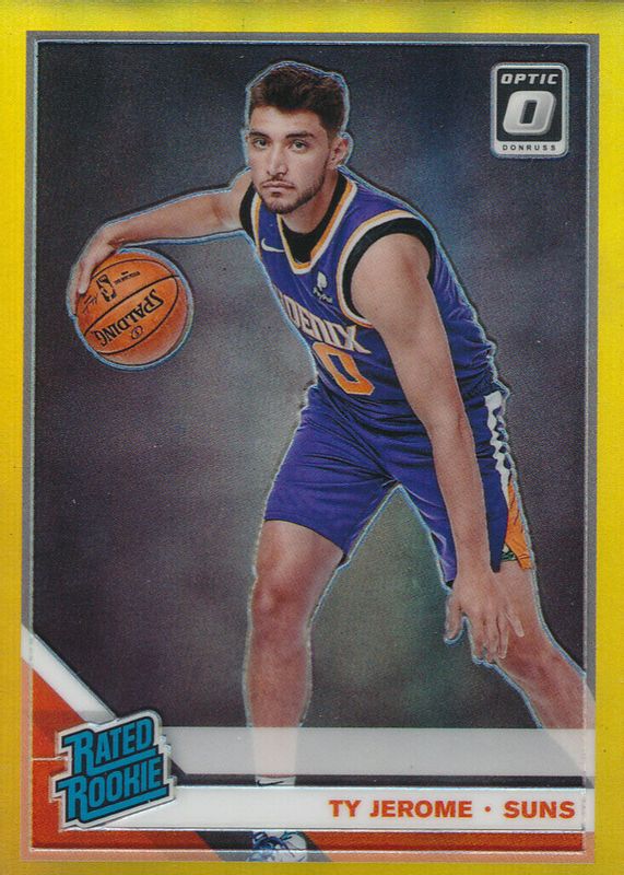 The Ty Jerome 2019 Optic #167 Gold /10 Rookie card in Raw condition has not changed in price in the last 30 days and was last sold for $75.00 .